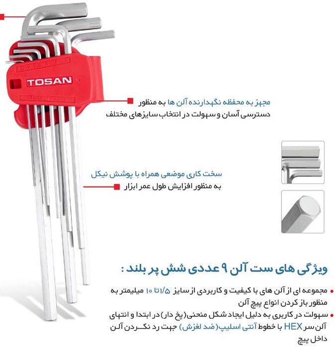 4180 ست آلن 9 عددی شش پربلند سایز 1/5 تا 10 توسن